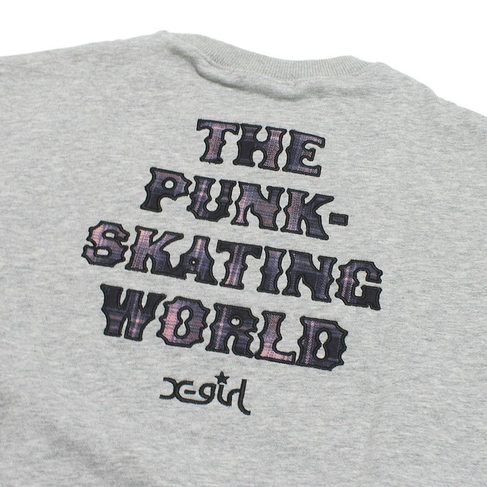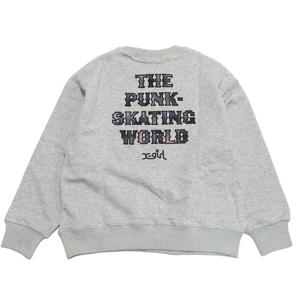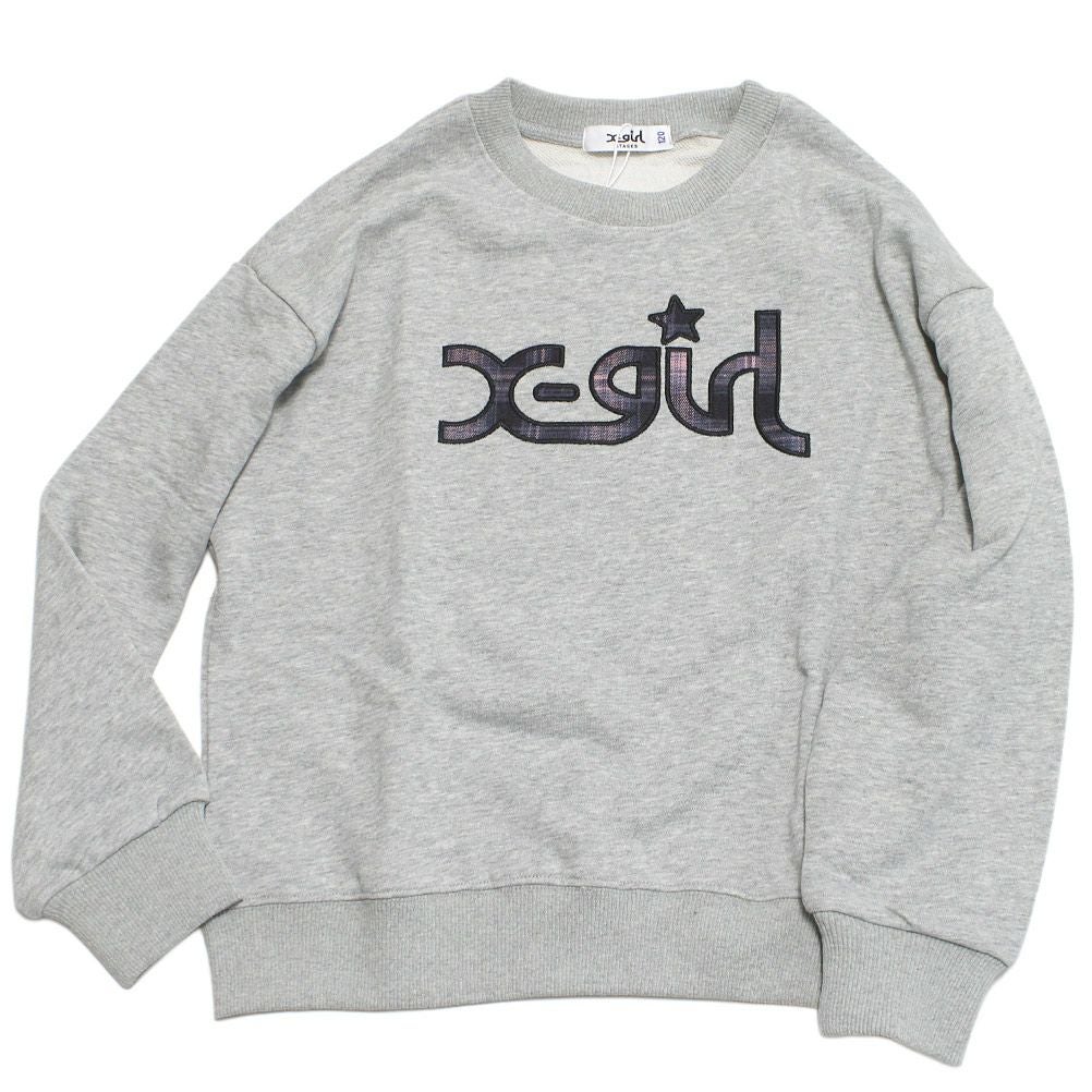 [エックスガールステージズ] チェックパッチロゴトレーナー TOP・グレー(85)