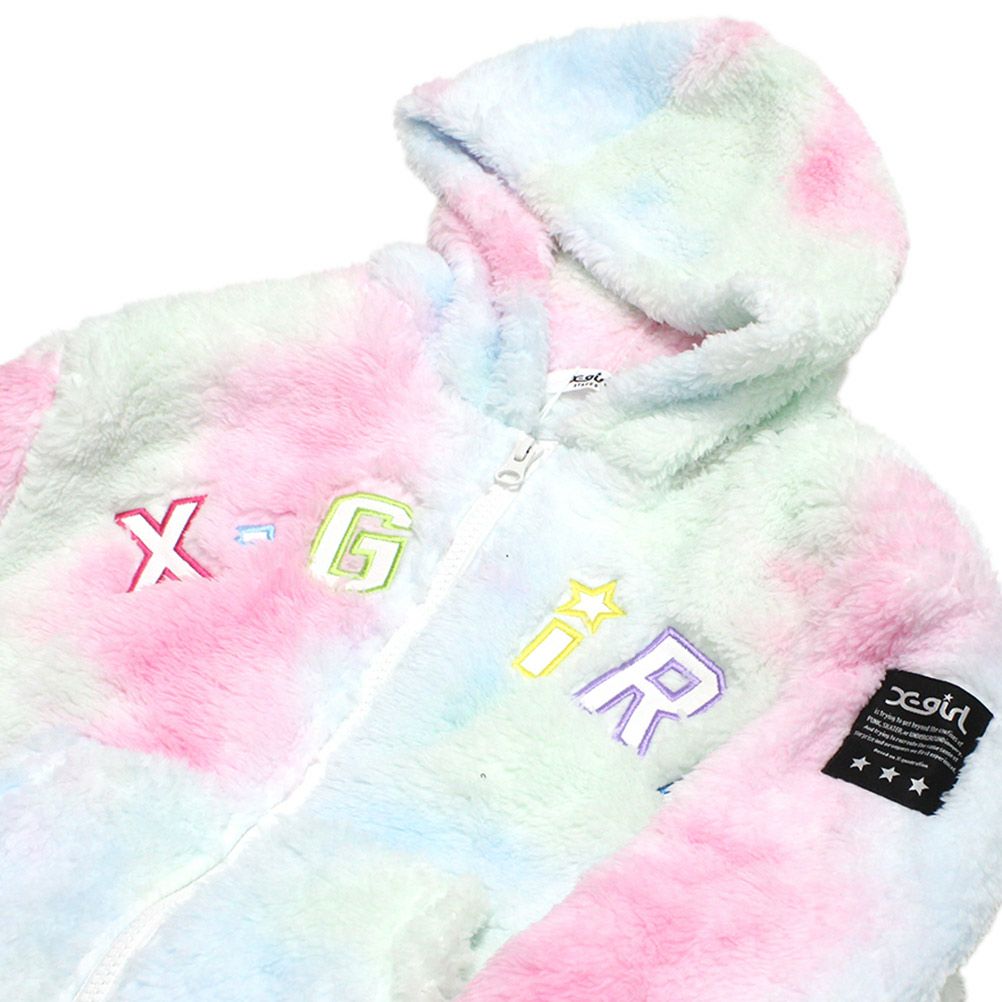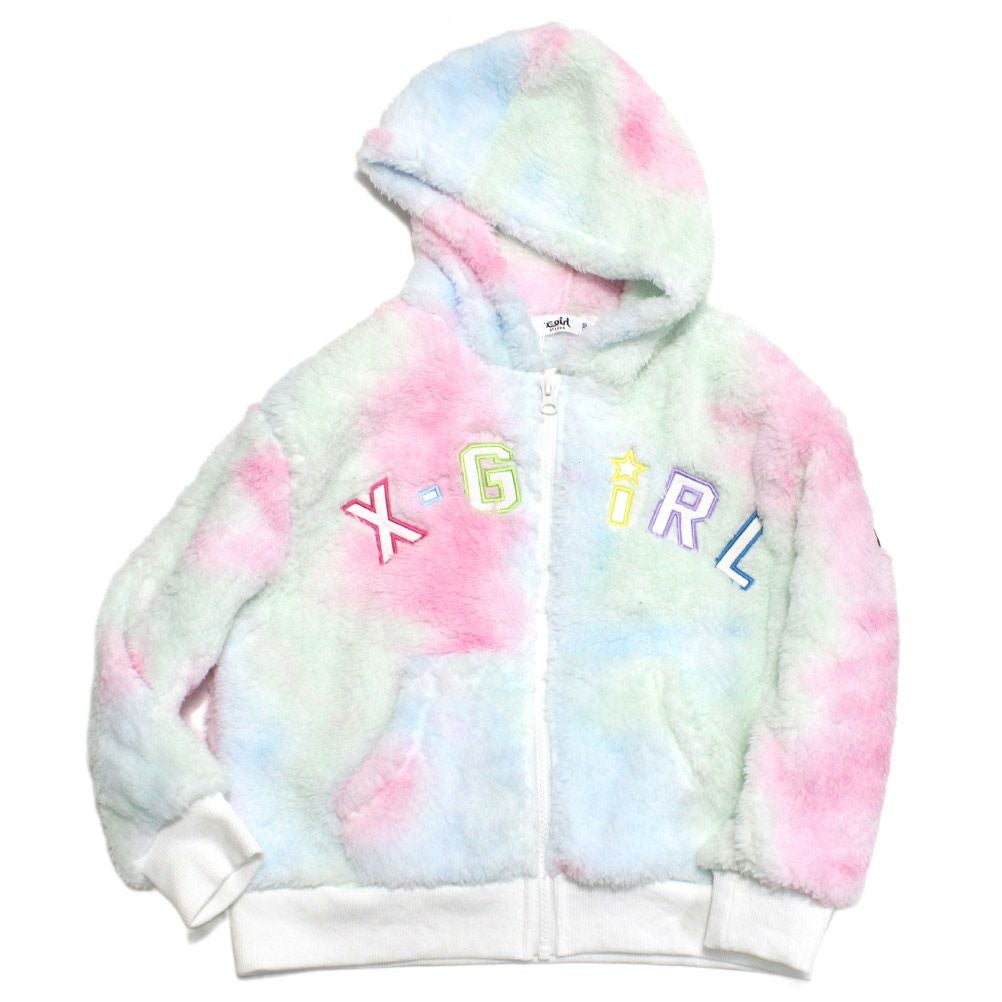 [エックスガールステージズ] ロゴアップリケ刺繍フラッフィージップパーカー マルチ(91)