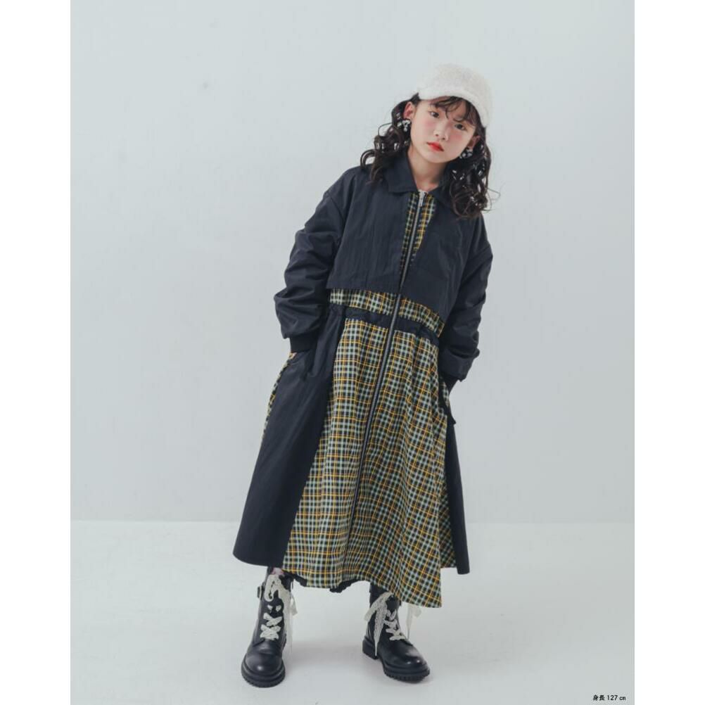 [ユニカ] チェックzipperジャケットワンピース ブラック(4)