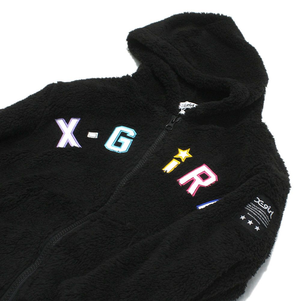 [エックスガールステージズ] ロゴアップリケ刺繍フラッフィージップパーカー クロ(80)