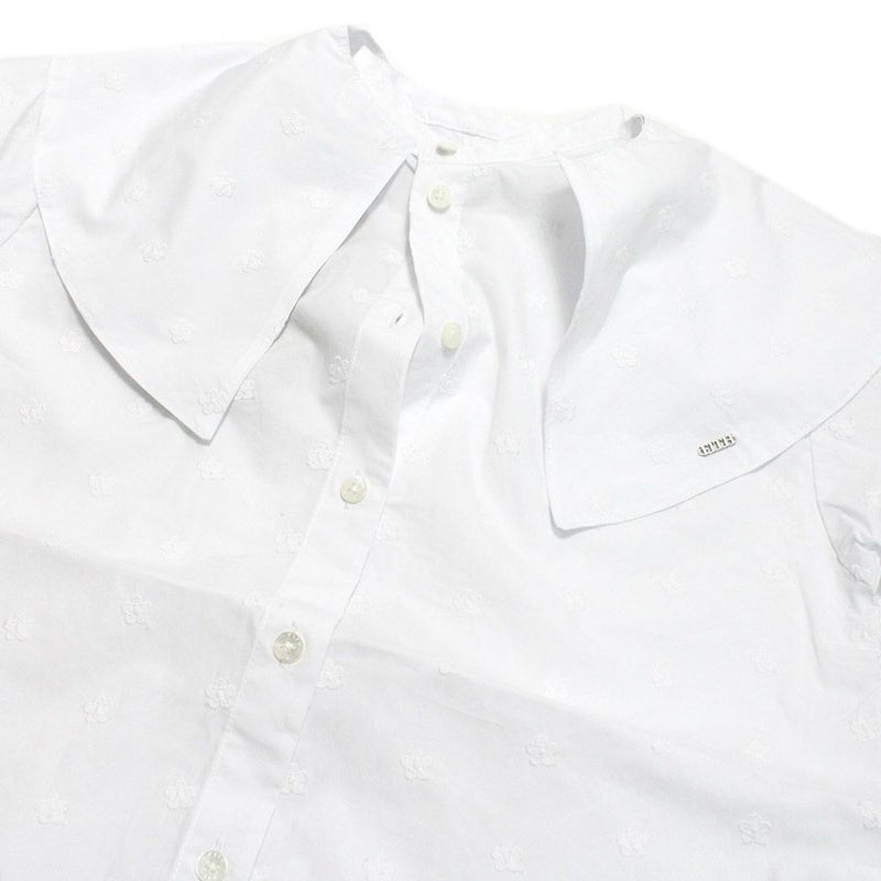 ・同色で小花柄の刺繍を施した上品なシャツ