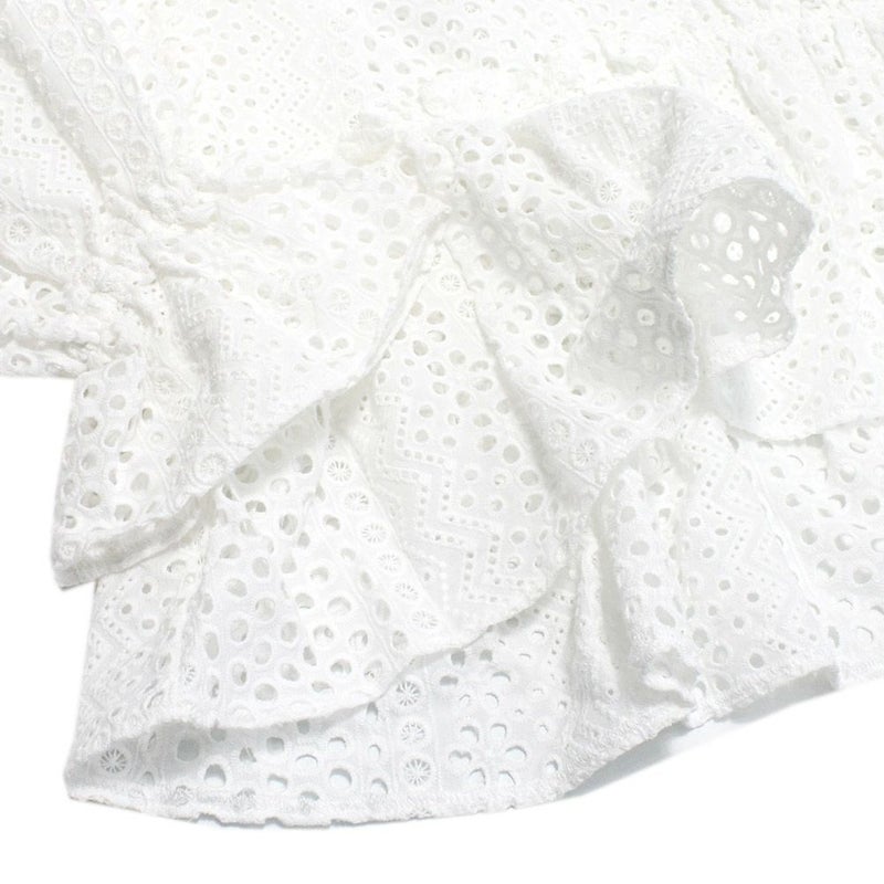 ・アイレット刺繍を施したコットン地にカットワークレース