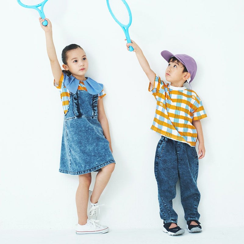 ・ストレッチデニムを使用したジャンパースカート