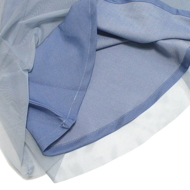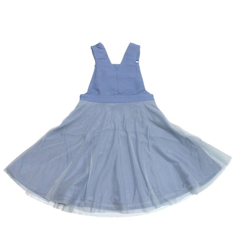 ・程よくツヤ感のあるグロッシーデニムにチュールを合わせたジャンパースカート