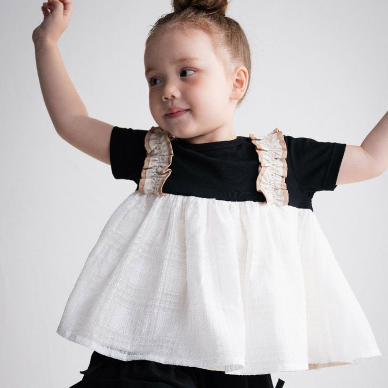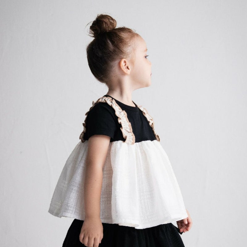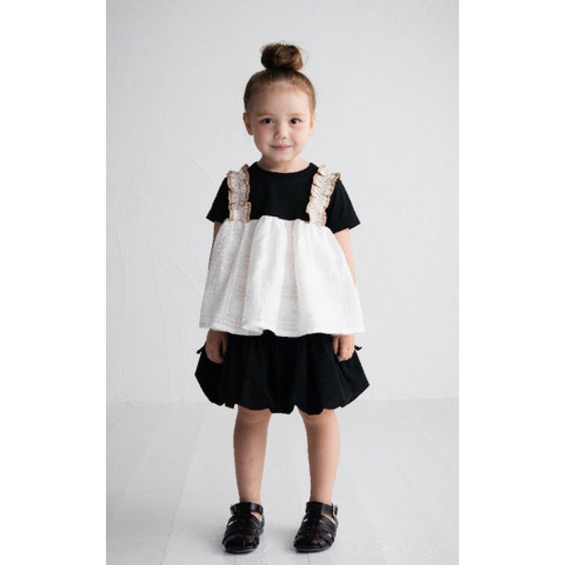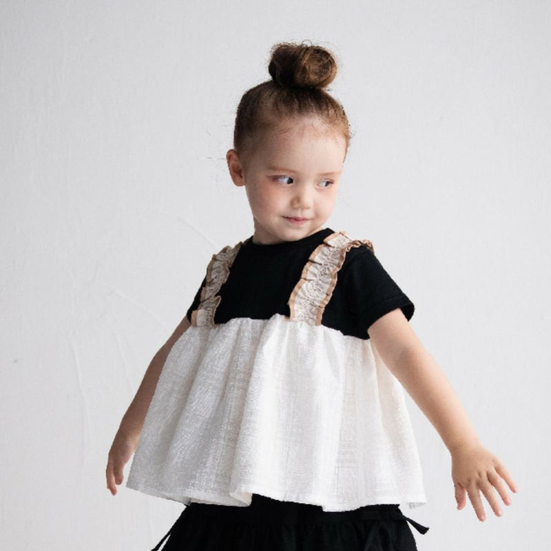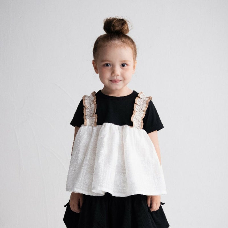 ・肩のフリルのサスペンダーがガーリーさを演出
