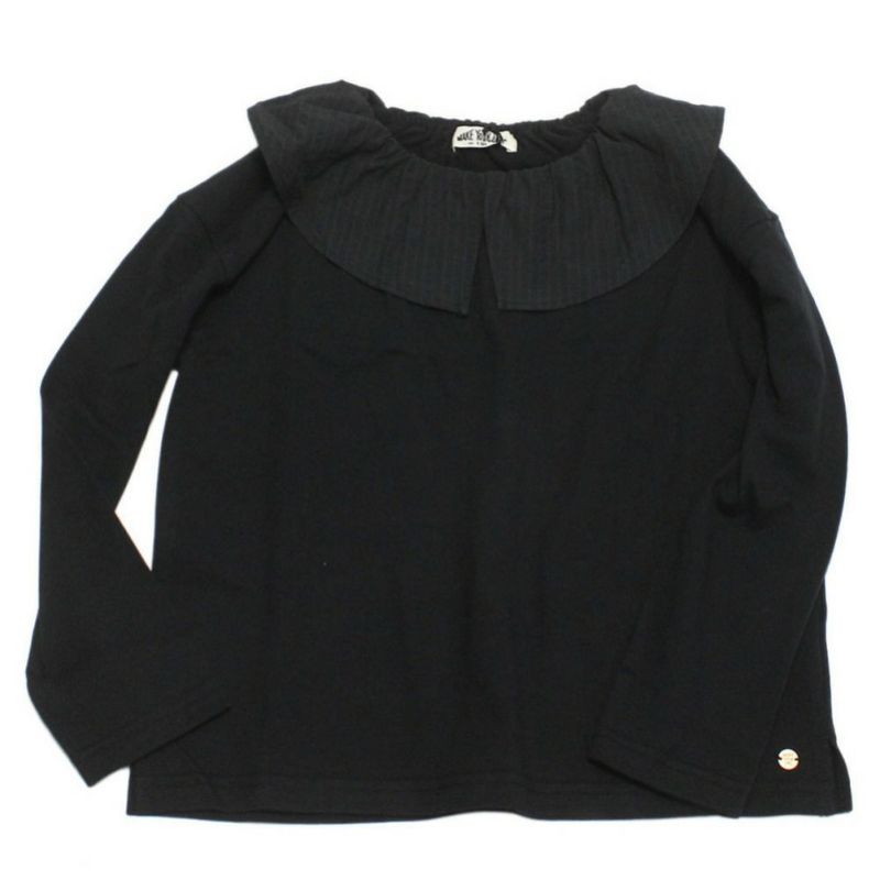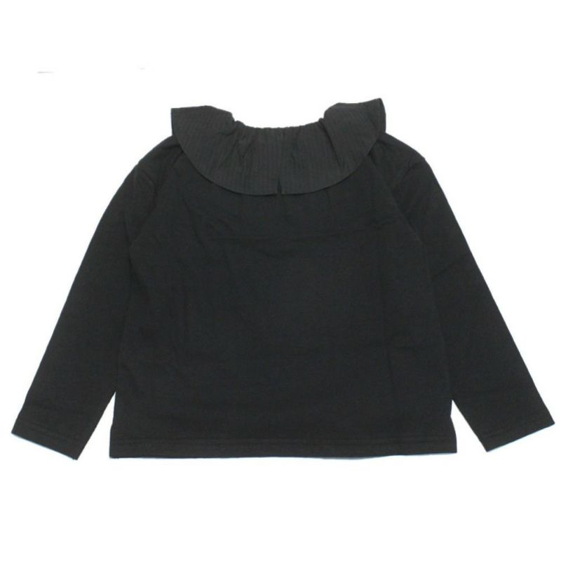 ・素材を切り替えたフリルが上品な長袖Tシャツ