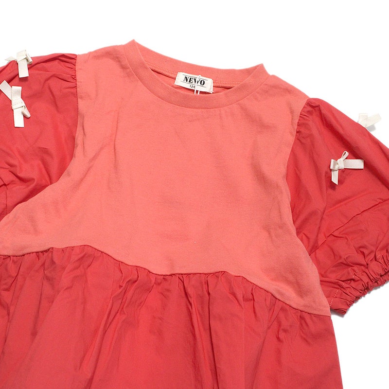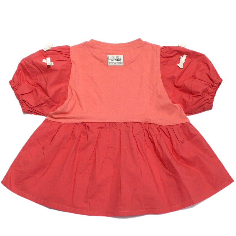 5. [ニードルワークス] 【NeWo】リボンパフスリーブTシャツ レッド