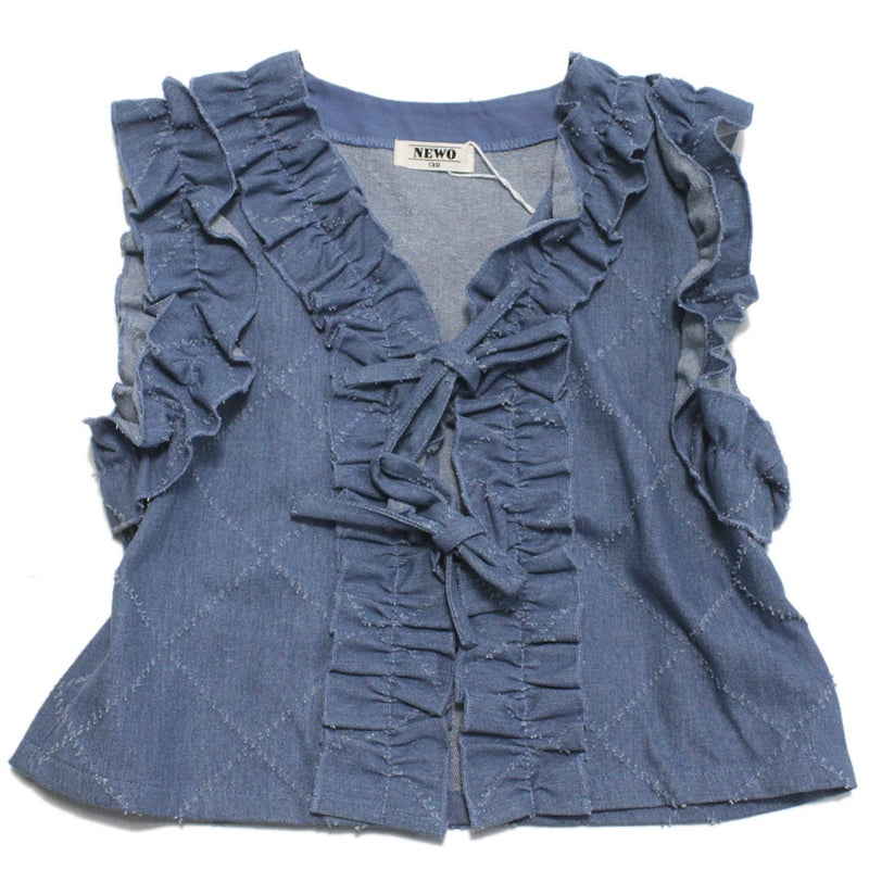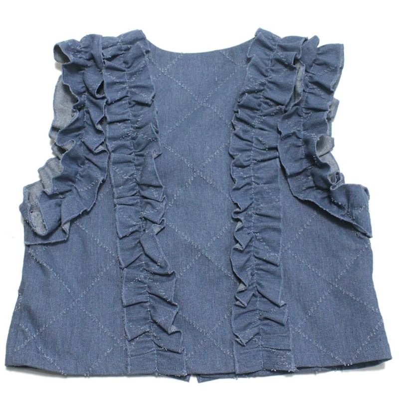 ・贅沢なフリル使いが印象的なデニムベスト
