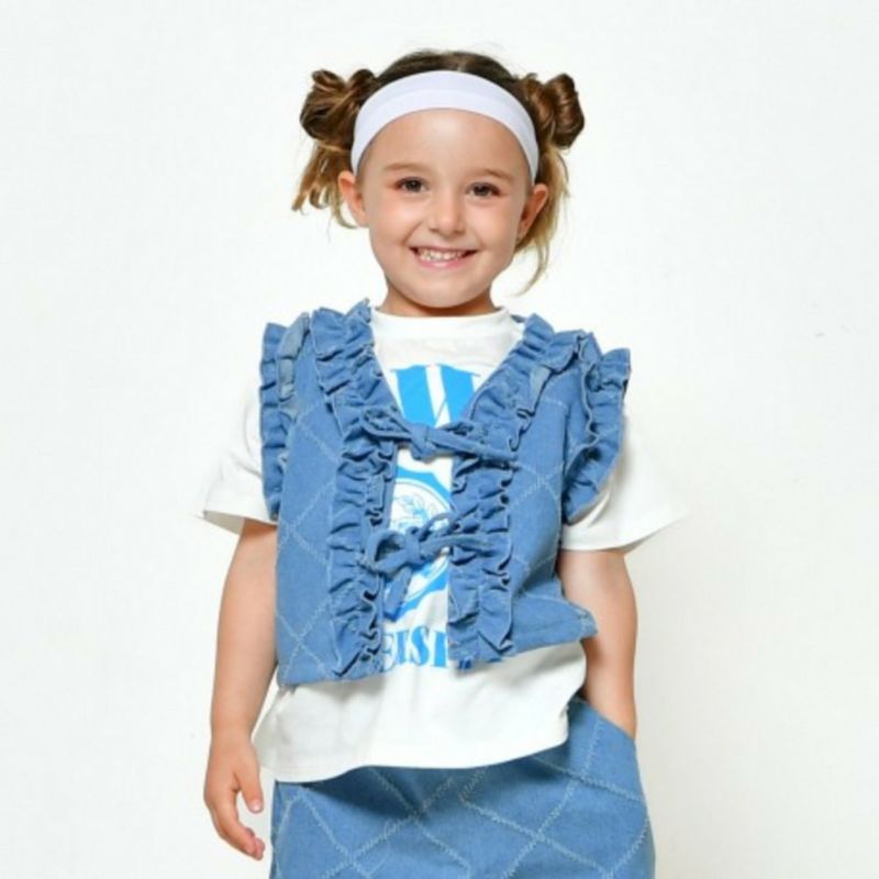 ・贅沢なフリル使いが印象的なデニムベスト