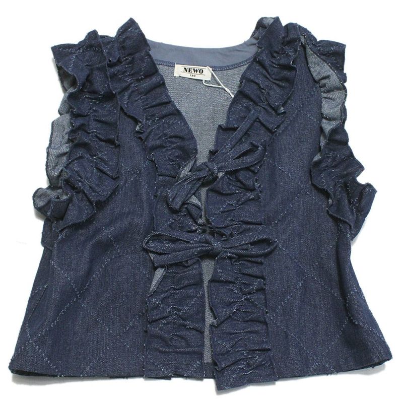 ・贅沢なフリル使いが印象的なデニムベスト