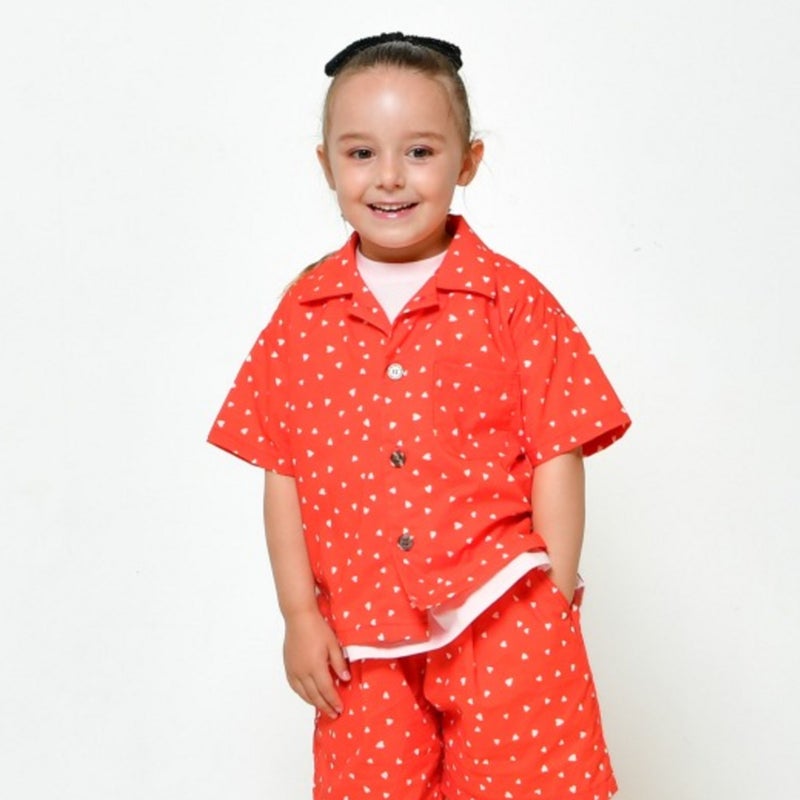 [ニードルワークス] 【NeWo】総柄プリントシャツ レッド