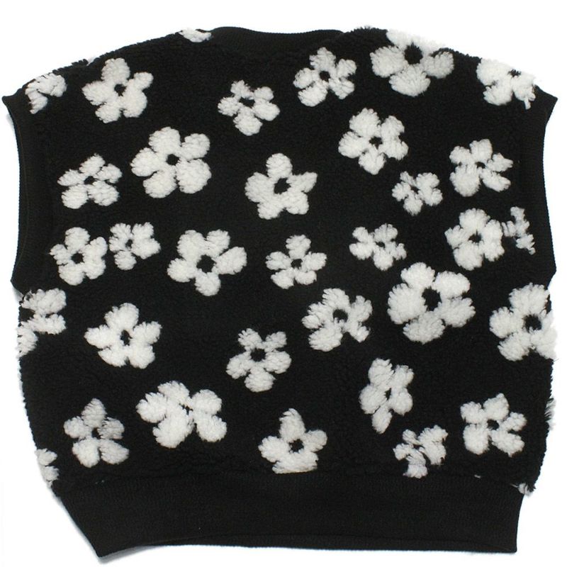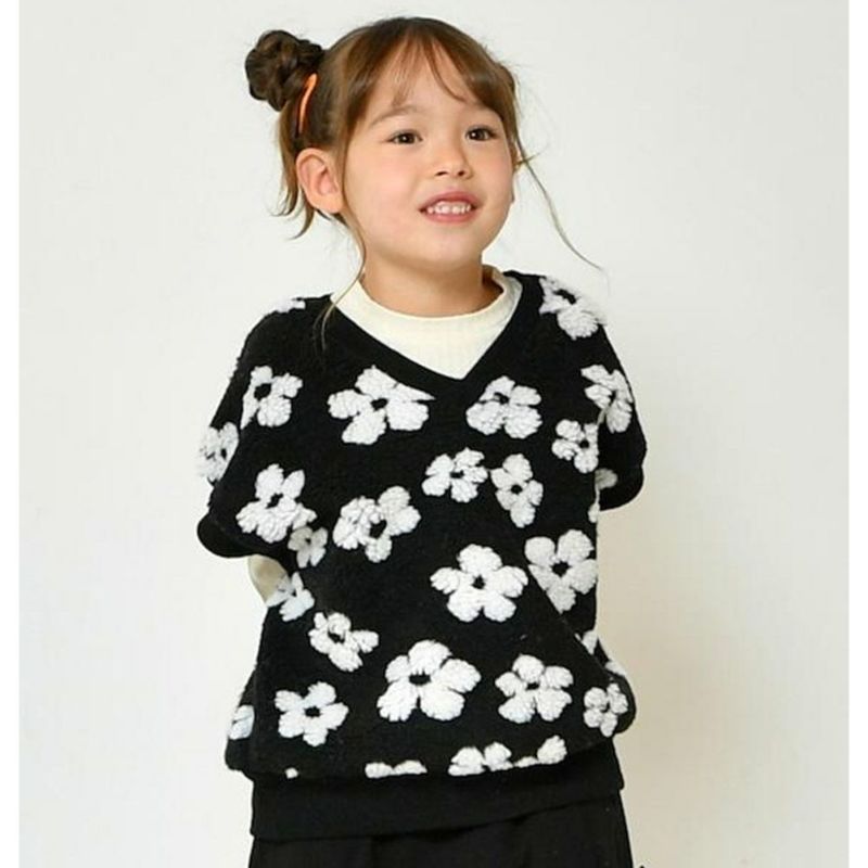 ・フラワーとハートの総柄がポイントのボアベスト