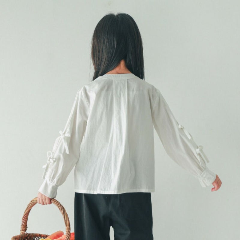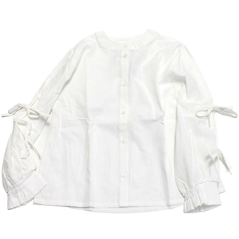 ・袖にタックを入れリボンをつけた長袖シャツ