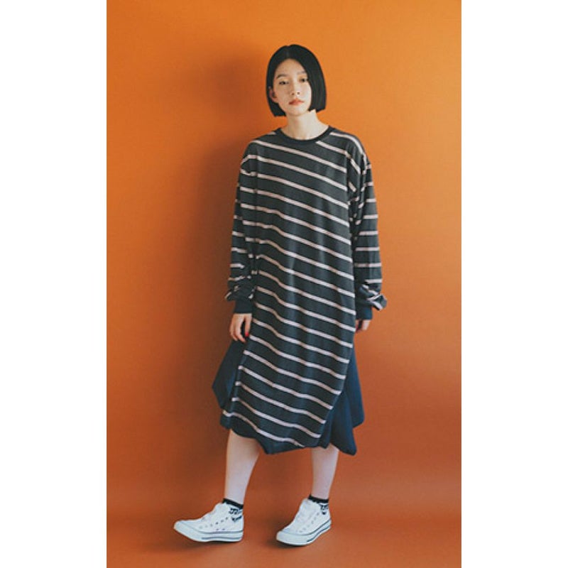 6. [ヌヌフォルム] 2WAYボーダーTシャツ チャコール