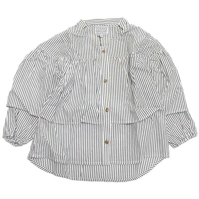 “オーシャン&グラウンド”の8分袖ラッフルシャツチュニック