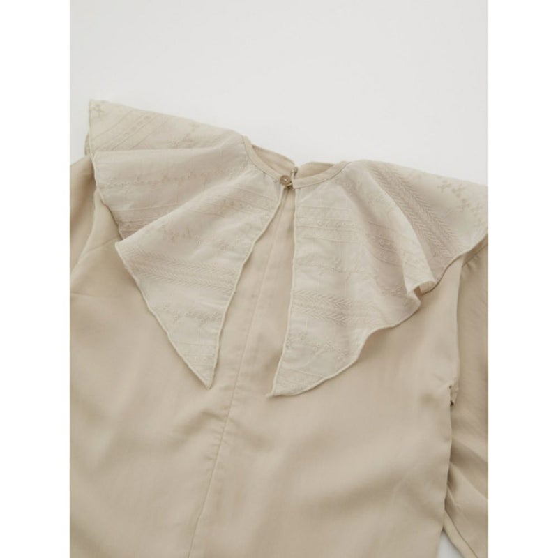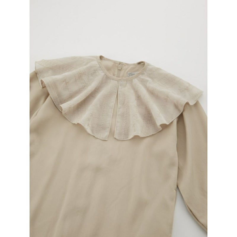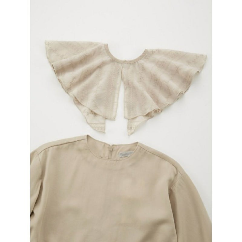 ・取り外しできる刺繍シフォンのラッフルカラーが存在感抜群