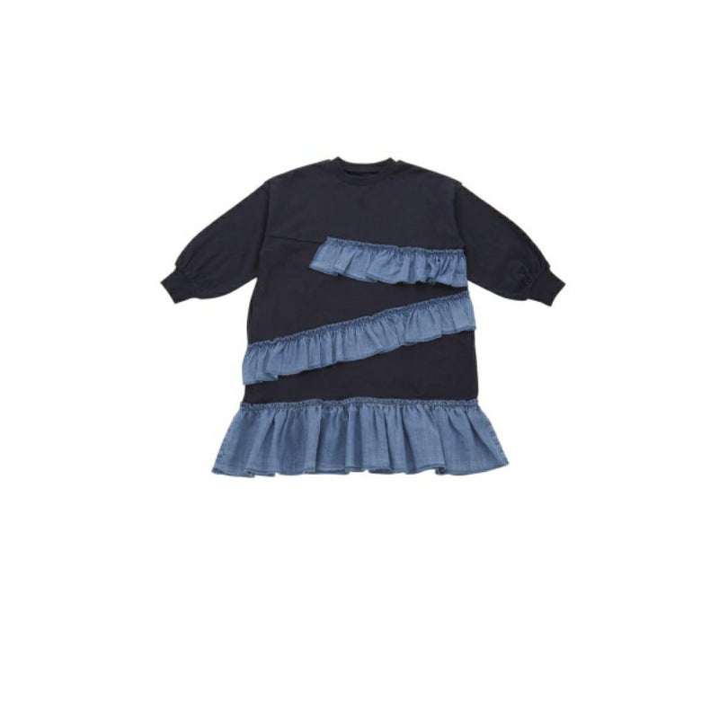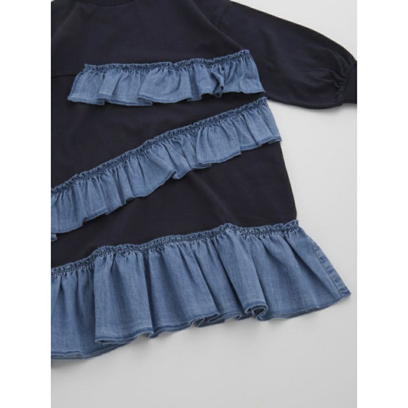 “オーシャン&グラウンド”のデニムフリルドッキングカットソーワンピース
