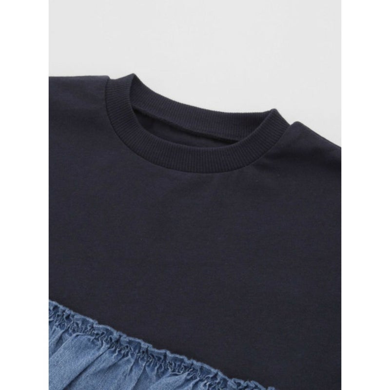 [オーシャン&グラウンド] デニムフリルドッキングカットソーワンピース チャコール(CH)