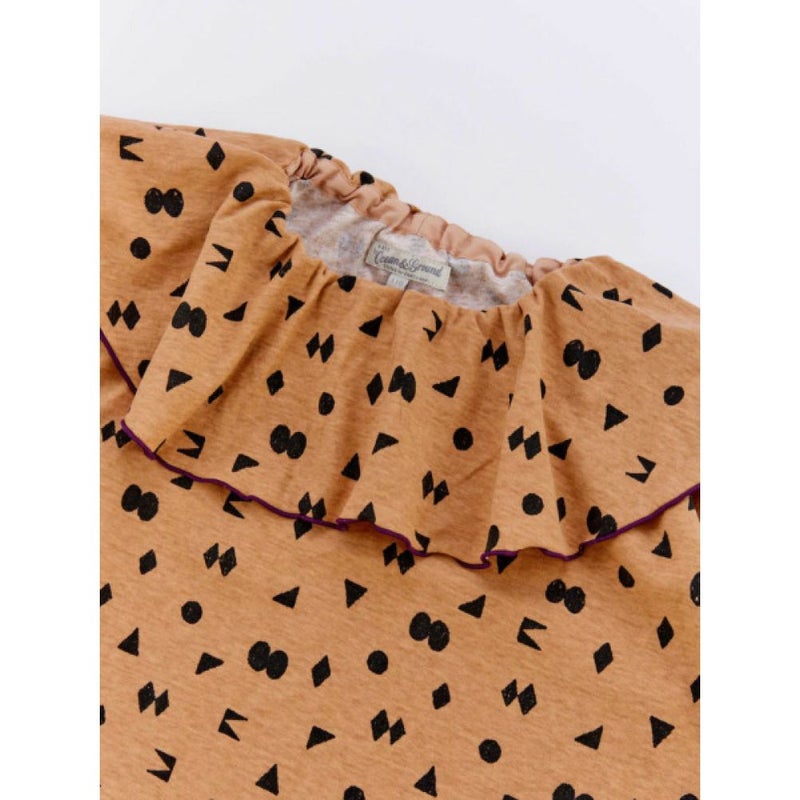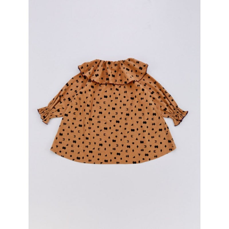 [オーシャン&グラウンド] ソウガラプリントフリルカラーワンピース ベージュ(BE)