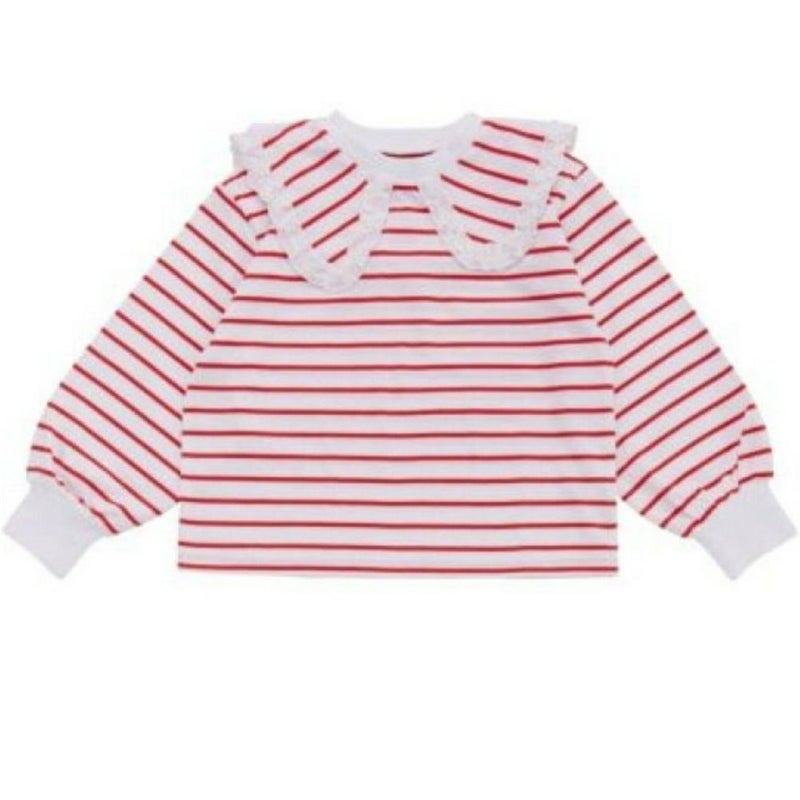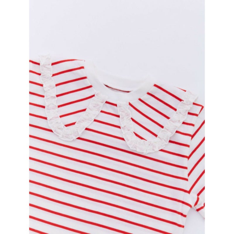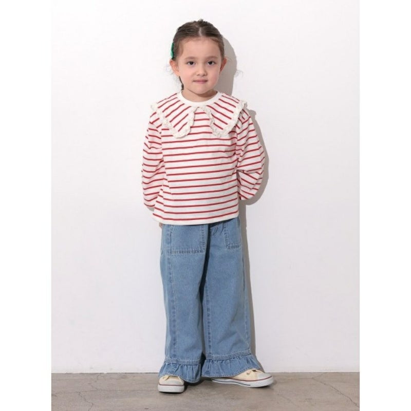 フリル付きセーラー衿がポイントの、ボーダーTシャツ