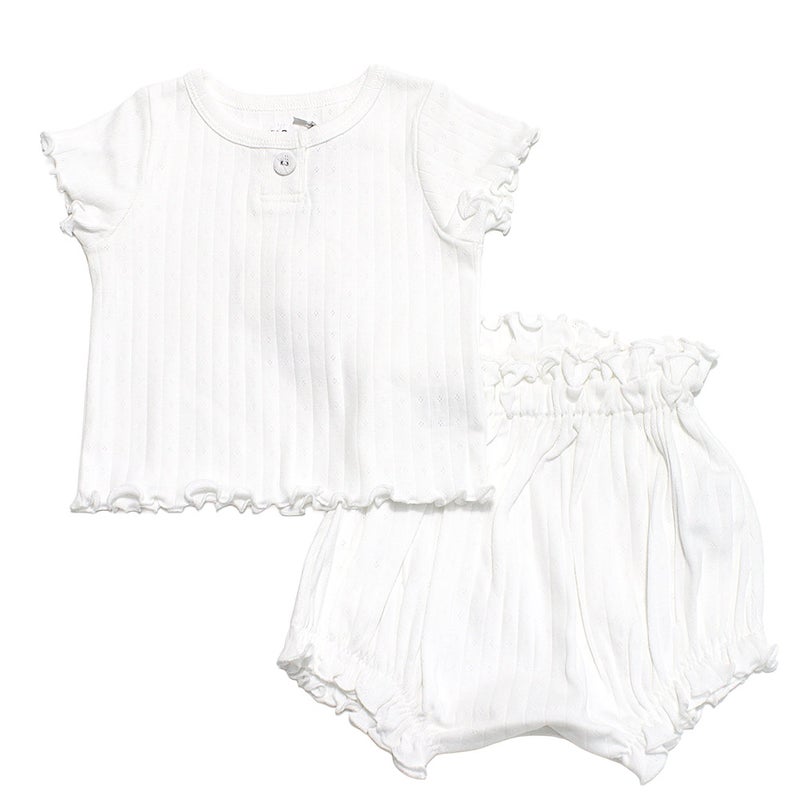 ・鍵抜き生地のトップスとパンツのセットアップ