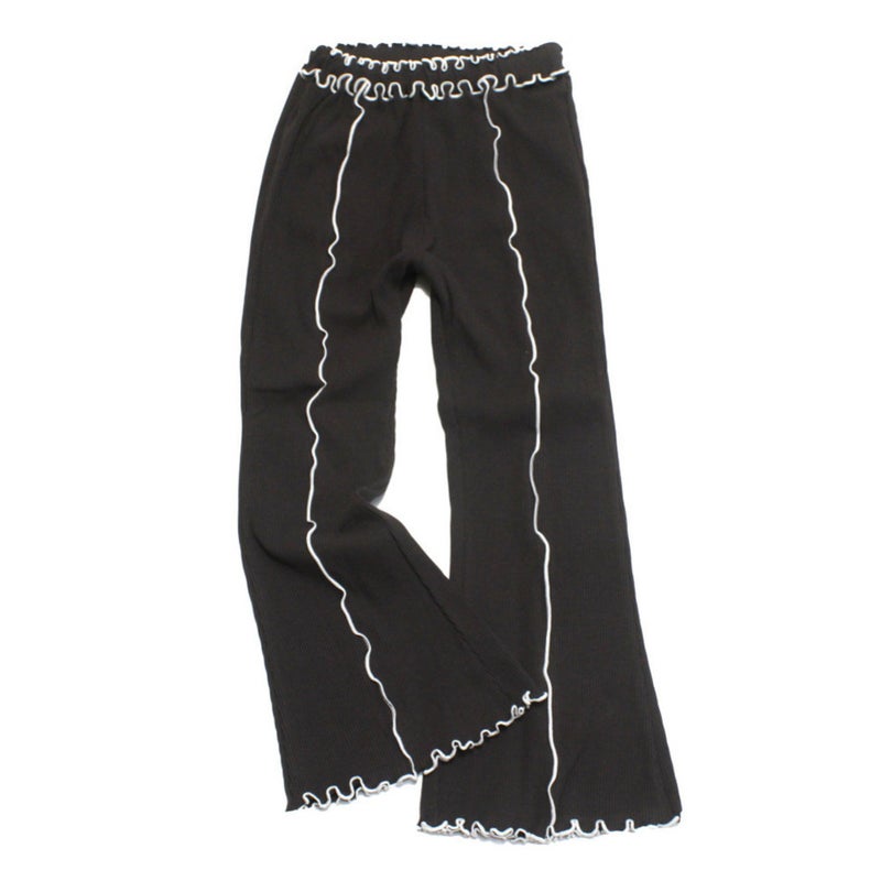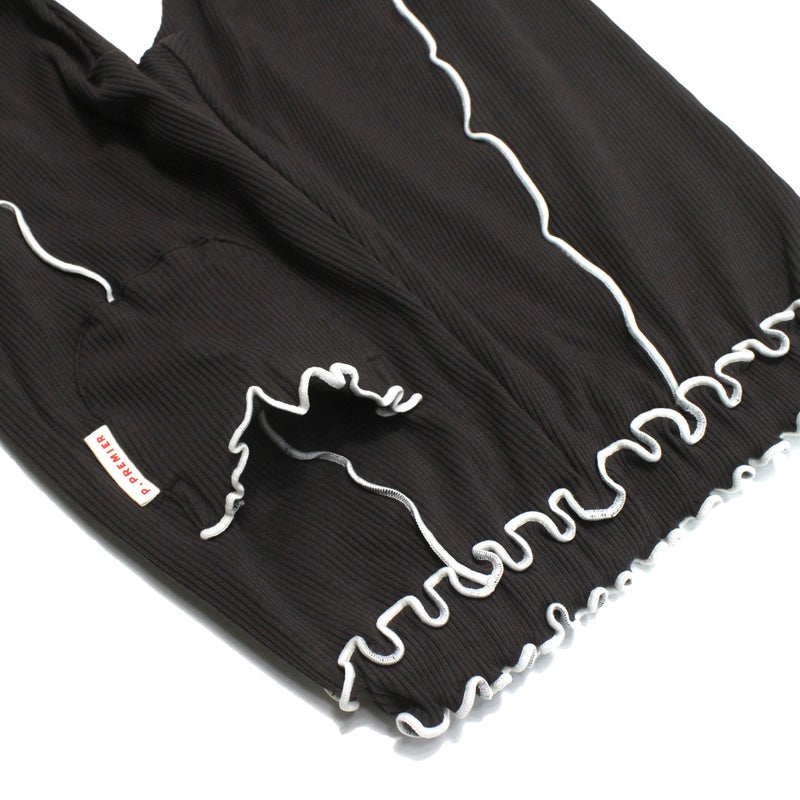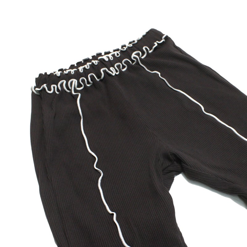 “ピードットプルミエ”の配色メロウのストレッチリブフレアパンツ