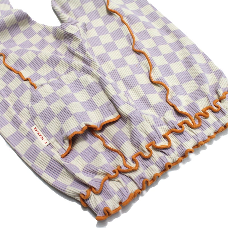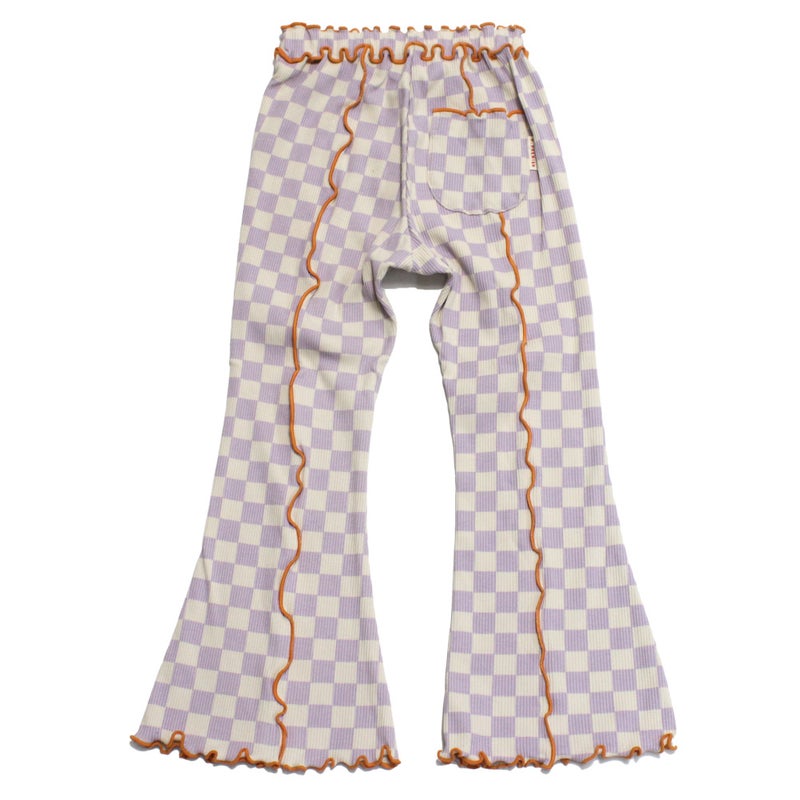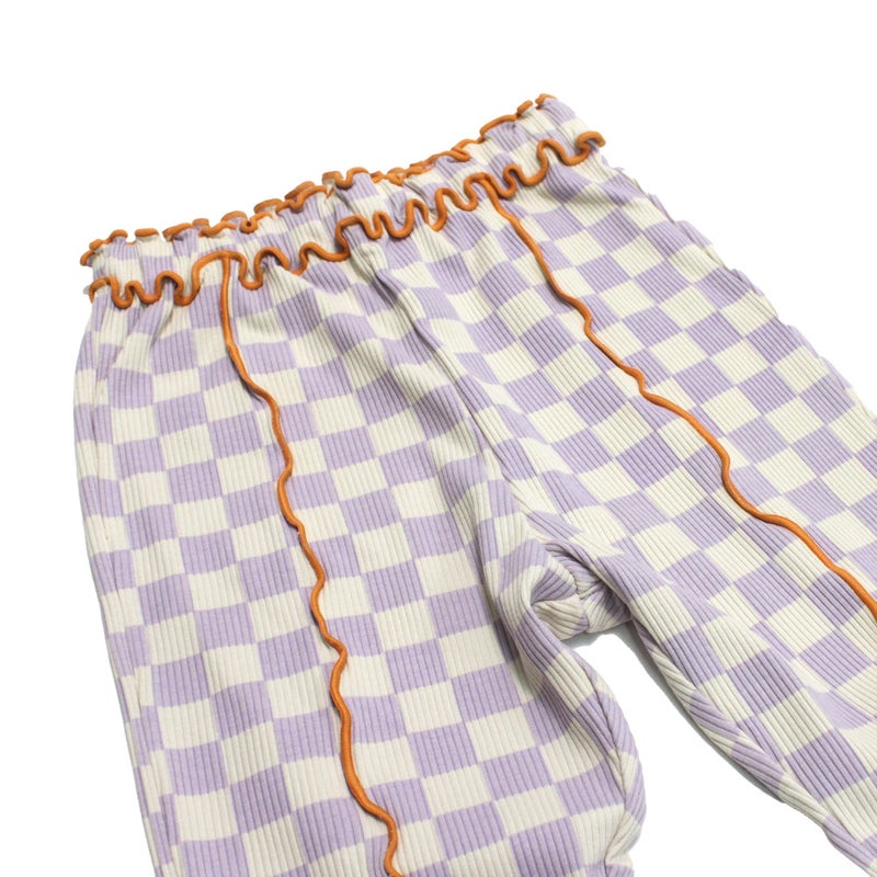 4. [ピードットプルミエ] 配色メロウのストレッチリブフレアパンツ ラベンダー(LV)