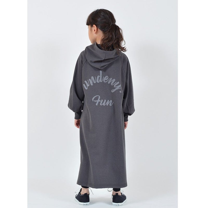 ・大きめのバックプリントがポイントのパーカーワンピース
