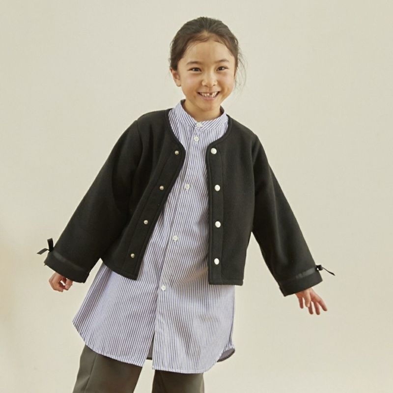 4. [アンディニー] フリースリボンカーディガン ブラック(BK)