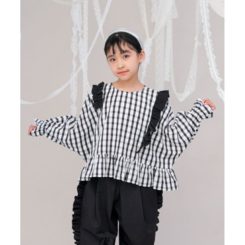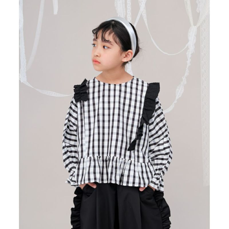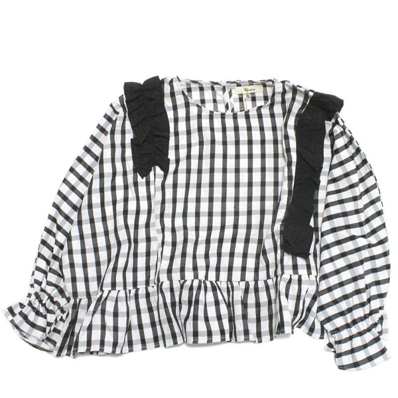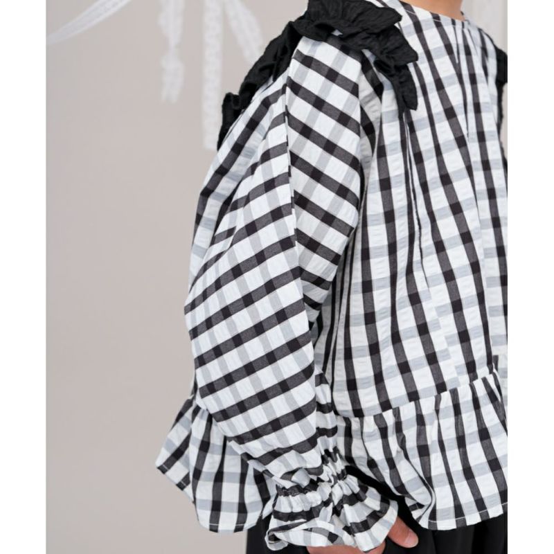 ・フリルがガーリーなチェック柄ブラウス