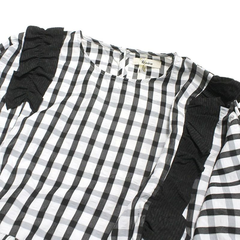 “ユニカ”のチェックドルマンスリーブフリルブラウス