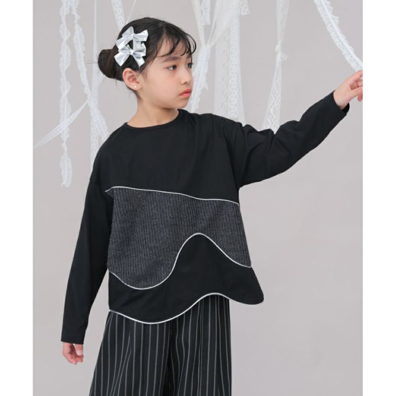6. [ユニカ] ウェーブパイピング切り替えTシャツ ブラック(4)