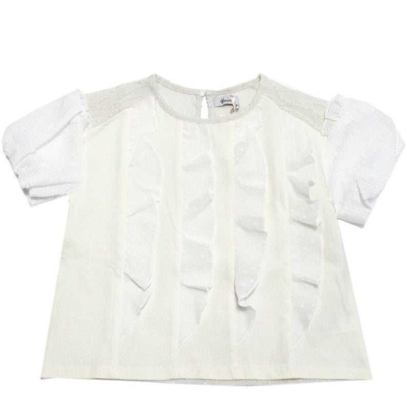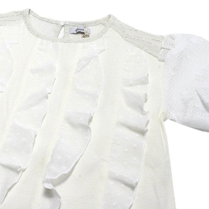 [ユニカ] ドットフリル異素材バルーンスリーブTシャツ オフホワイト(2)