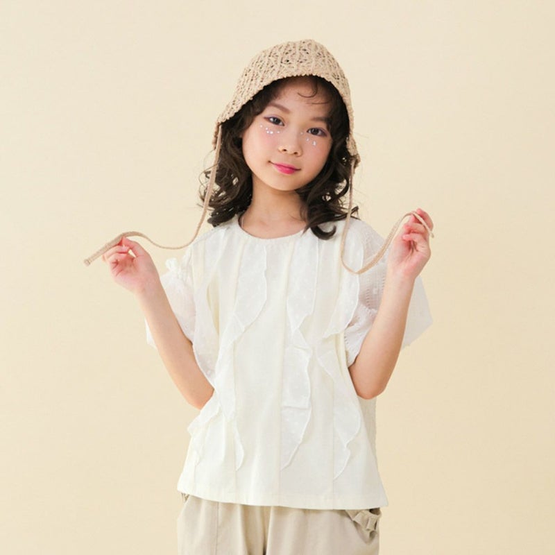 4. [ユニカ] ドットフリル異素材バルーンスリーブTシャツ オフホワイト(2)