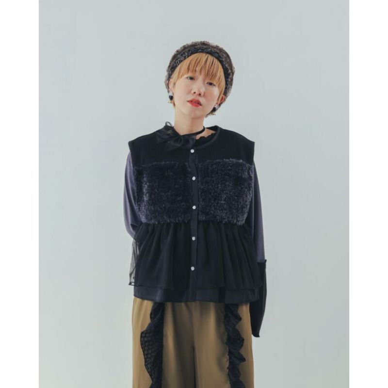 [ユニカ] ファーニットフリルベスト ブラック(4)