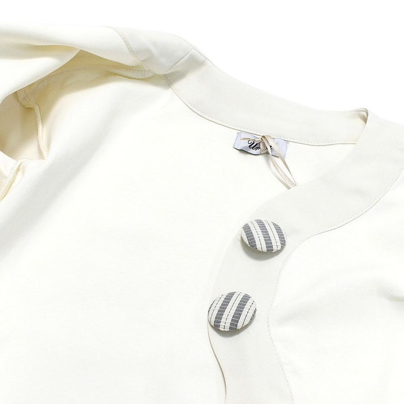 ・丸いくるみボタンがフェミニンな印象をUP