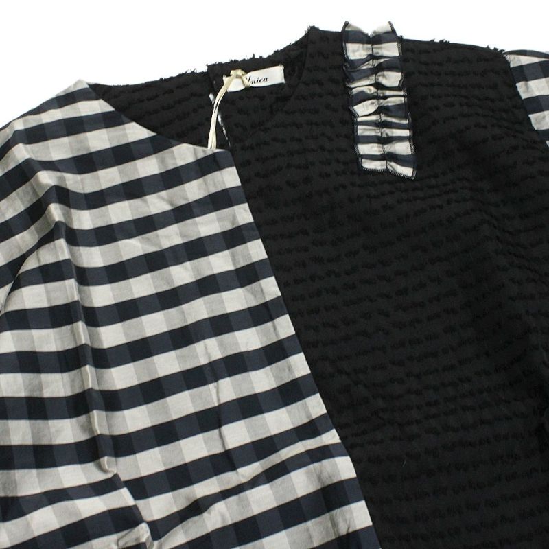 “ユニカ”のブロックチェックフリンジドルマンブラウス
