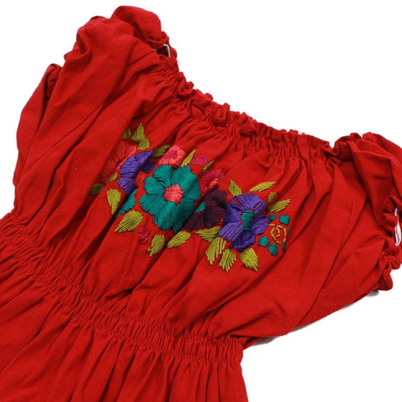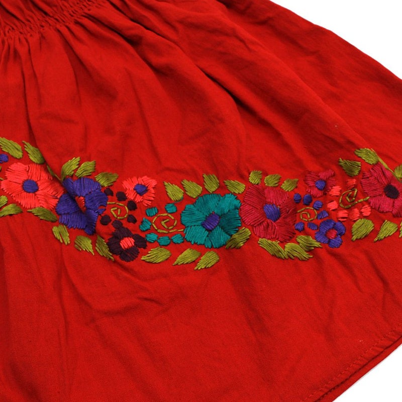 [ユーエスユーズド] メキシカン フラワー刺繍ワンピース レッド