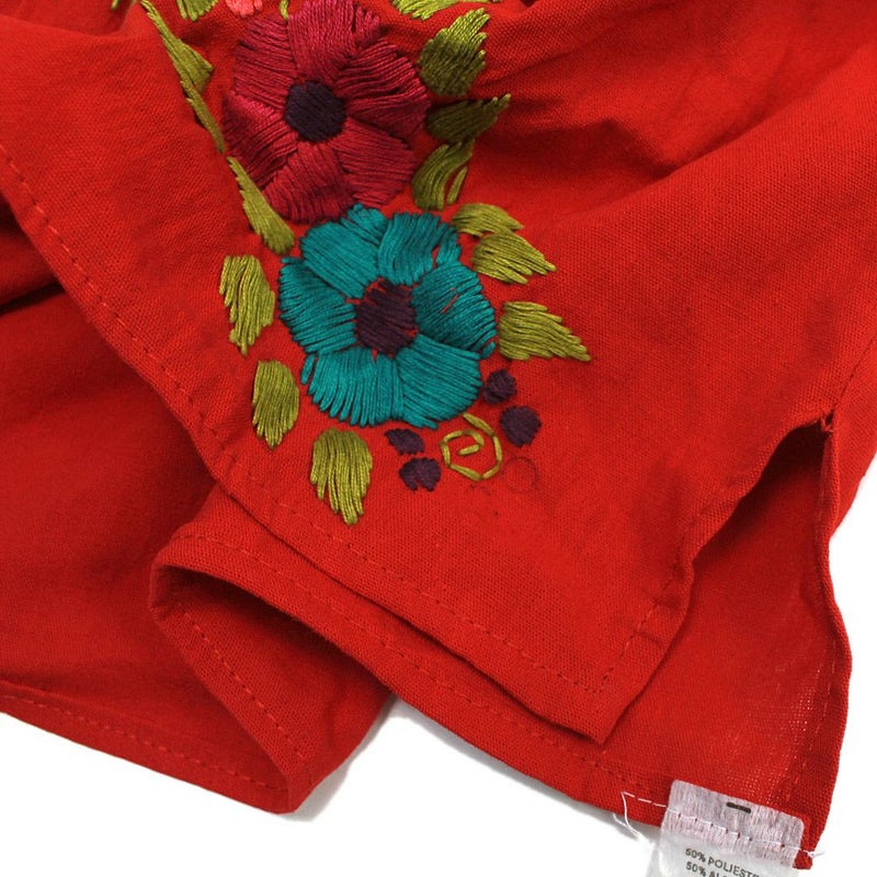 6. [ユーエスユーズド] メキシカン フラワー刺繍ワンピース レッド