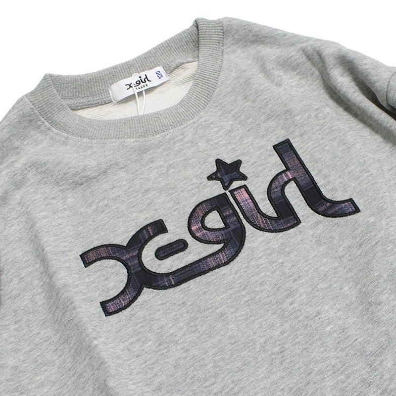 “エックスガールステージズ”のチェックパッチロゴトレーナー