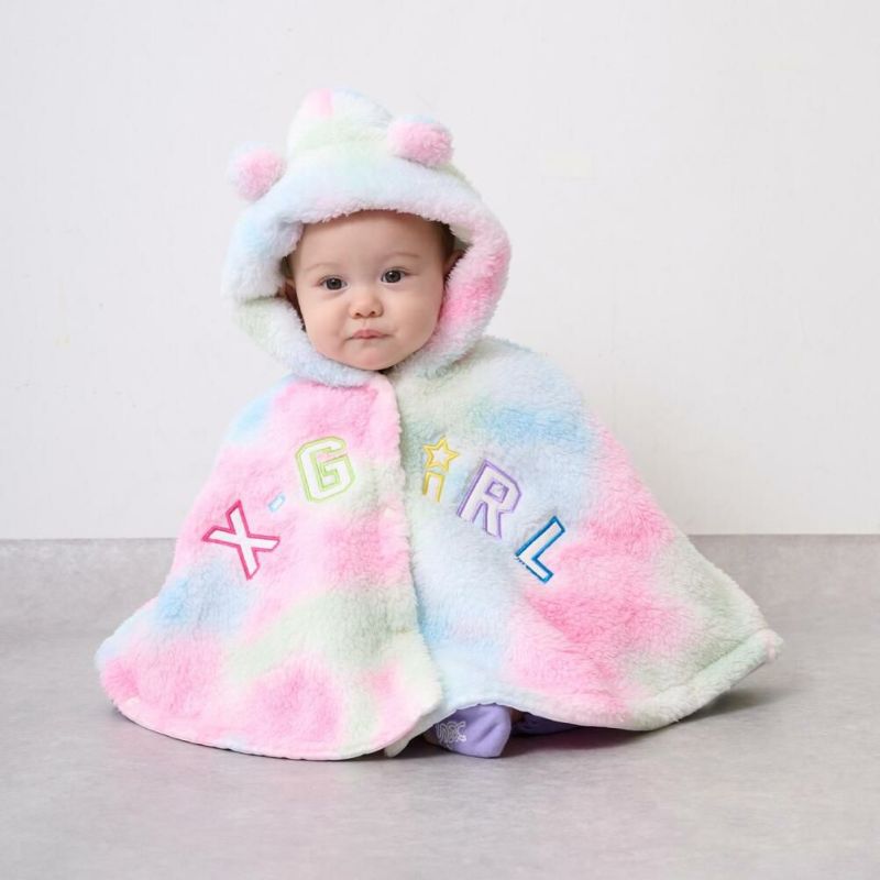 “エックスガールステージズ”のロゴ刺しゅうアップリケフラッフィーポンチョ