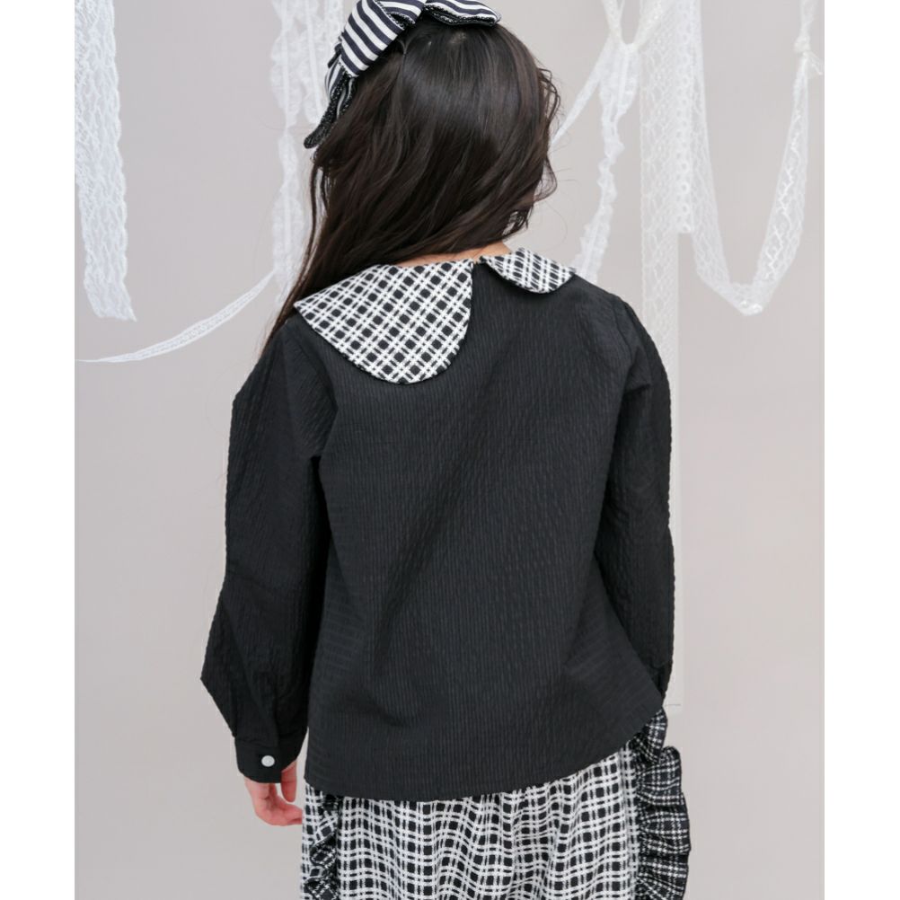 [ユニカ] チェックドルマンスリーブフリルブラウス ブラック(4)
