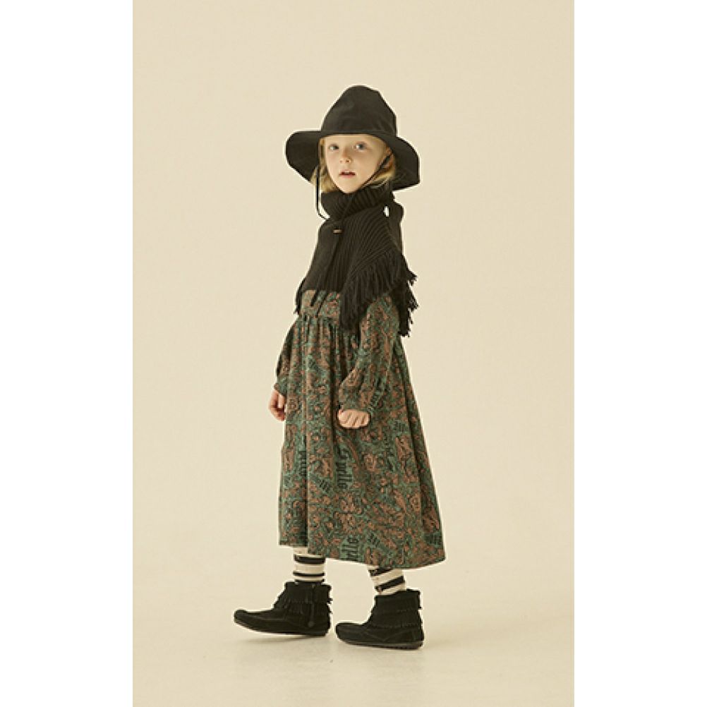 [エルフィンフォルク] Magic Spell print Vintage Satin ドレス グリーン