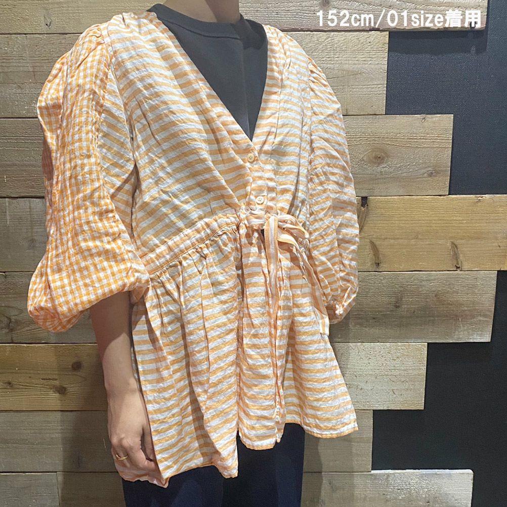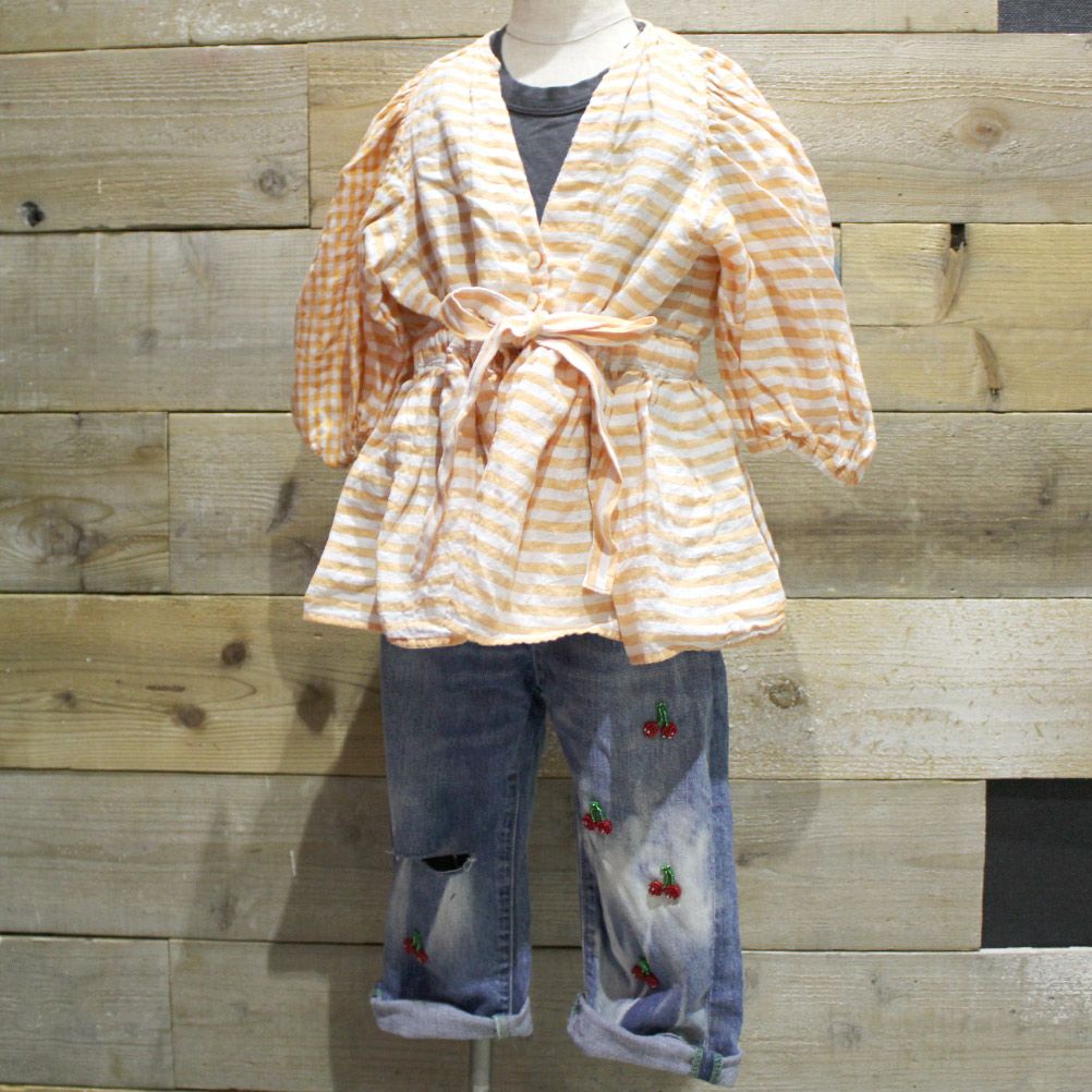 [ゴートゥーハリウッド] リネンボーダー ブラウス 15ORオレンジ