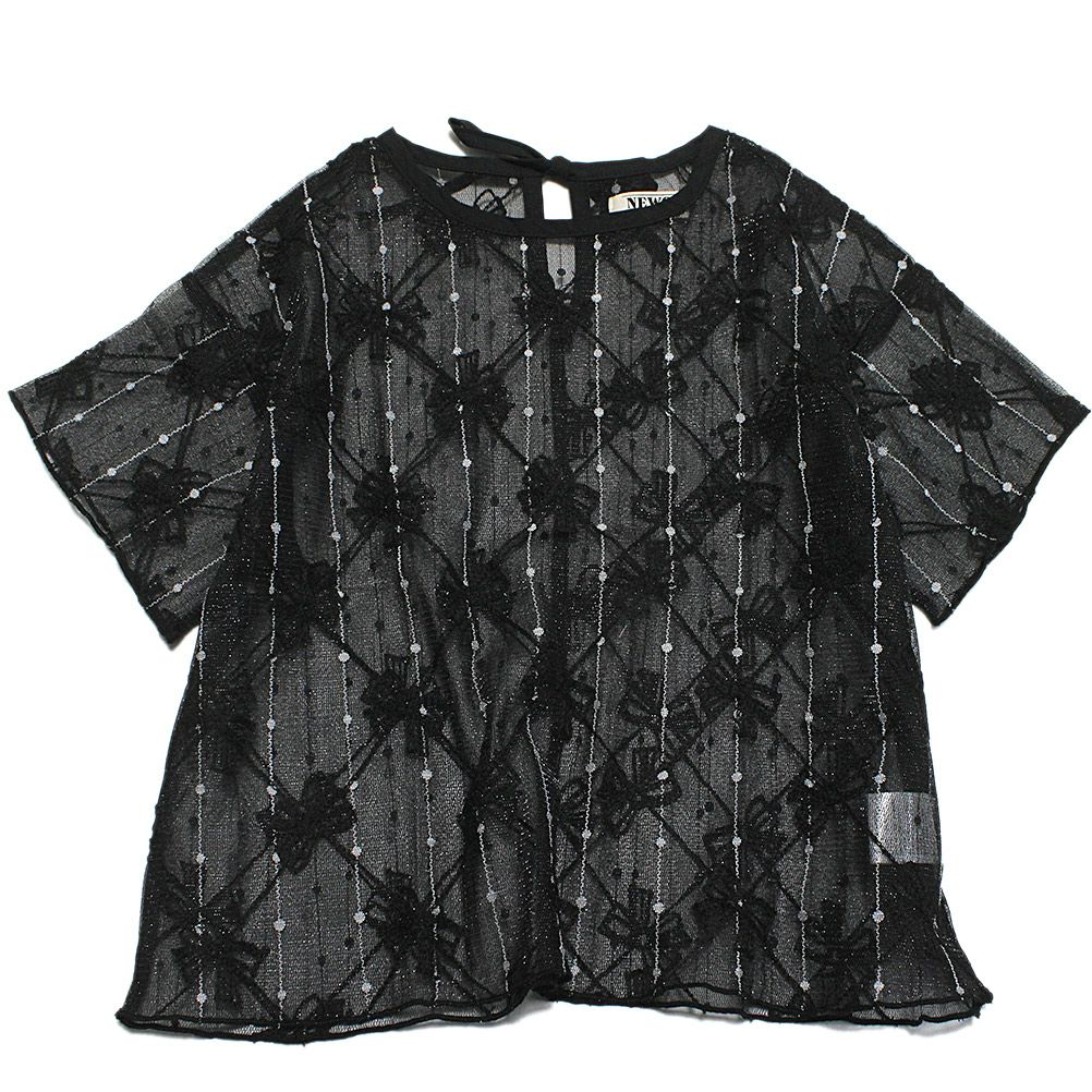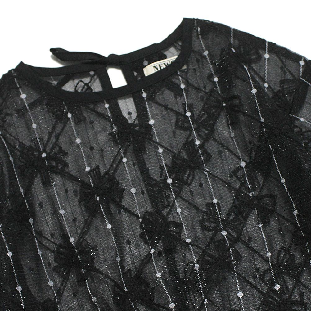 [ニードルワークス] 【NeWo】リボンメッシュプルオーバー ブラック