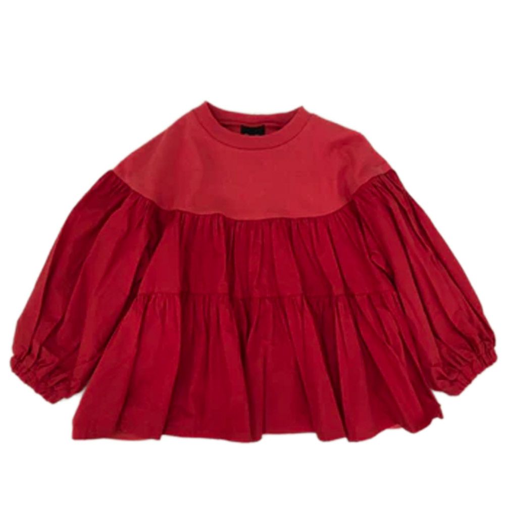 [ニードルワークス] 肉厚天竺ローンギャザーTシャツ スカーレット