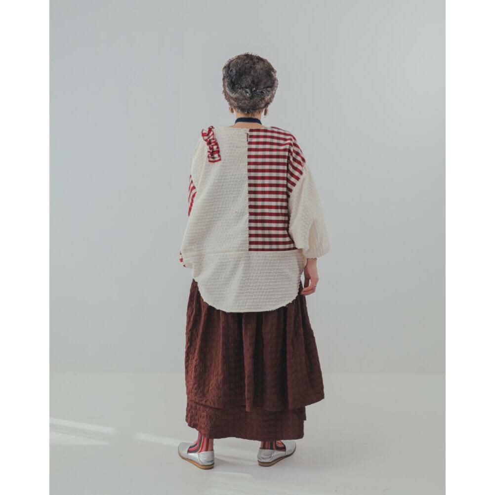 “ユニカ”のブロックチェックフリンジドルマンブラウス
