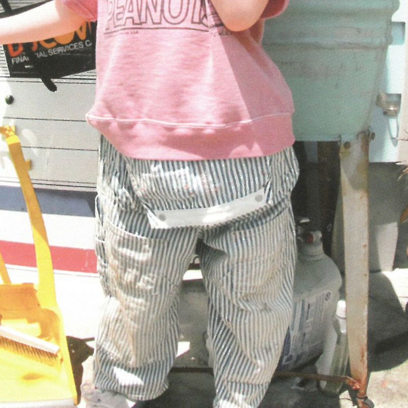 ・太ストライプのヒッコリーワークパンツ