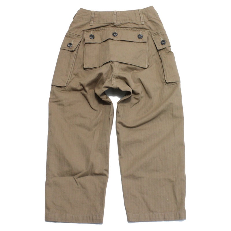 ・後に大きなポケットが付いたヘリンボーンパンツ