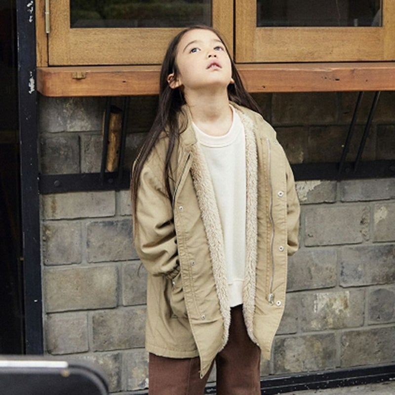 MODEL:114cm / 19kg / ベージュ M(110-120)サイズ着用